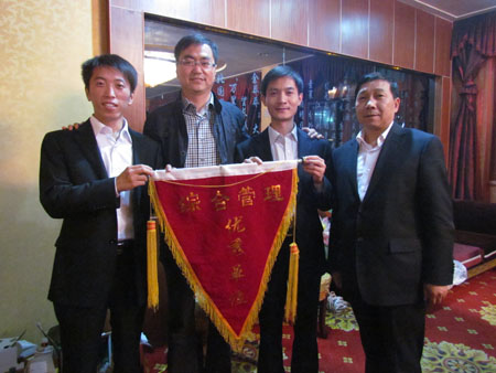 在此次會議上舉行了“三比三看”活動首面流動紅旗頒發(fā)儀式,檸條塔調(diào)運部以“管理規(guī)范、團隊和諧、服務優(yōu)質(zhì)、環(huán)境整潔”贏得了廣大司機、客戶及礦方的認可和肯定,從而獲得了首面流動紅旗。檸條塔調(diào)運部主管王鵬(。┰跁习l(fā)表了獲獎感言:在廣通神木分公司全力沖刺2012年各項目標任務的關(guān)鍵時期,分公司授予檸條塔調(diào)運部的這面綜合管理流動紅旗,不僅激勵了檸條塔調(diào)運部全體員工的工作熱情和工作積極性,更是鞭策了廣通神木分公司的全體員工。我們將以此為契機,立足本職,學習借鑒兄弟部門的先進經(jīng)驗,不斷改進自己的工作方式、方法,力爭使檸條塔調(diào)運部的各項工作能再上新臺階。