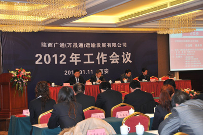 2012年1月11日,陜西廣通運(yùn)輸發(fā)展有限公司、陜西萬(wàn)晟通實(shí)業(yè)有限公司2012年工作會(huì)議在西安悅豪酒店隆重召開(kāi)。陜煤運(yùn)銷(xiāo)集團(tuán)公司總經(jīng)理助理、運(yùn)輸中心主任譚志軍,陜煤炭運(yùn)銷(xiāo)集團(tuán)公司財(cái)務(wù)部經(jīng)理、廣通公司財(cái)務(wù)總監(jiān)和學(xué)謙,廣通公司董事長(zhǎng)、萬(wàn)晟通公司董事長(zhǎng)任曉鵬,廣通公司總經(jīng)理、萬(wàn)晟通公司董事長(zhǎng)助理沈來(lái)萬(wàn),萬(wàn)晟通公司總經(jīng)理孟立新,陜煤炭運(yùn)銷(xiāo)集團(tuán)公司運(yùn)輸中心王江,以及廣通和萬(wàn)晟通公司的員工代表共九十多人參加了此次會(huì)議。會(huì)議由廣通公司常務(wù)副總經(jīng)理張益銘主持。