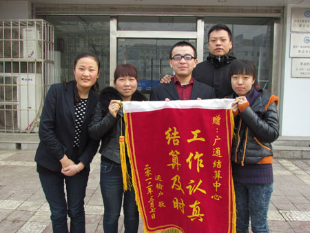 送來錦旗的運輸戶姓焦,2月底的一天,因為自己的疏忽不慎將一份結(jié)算票據(jù)遺失。其實他早已認定丟失的票據(jù)已被他人結(jié)算兌現(xiàn)。不過,令他意外的是3月2日,當(dāng)他到彬縣分公司結(jié)算中心結(jié)算運費時,結(jié)算員郭寶銳將丟失的結(jié)算票據(jù)交還給了他。拿著失而復(fù)得的票據(jù),焦師傅驚喜萬分。3月9日,焦師傅帶著錦旗與感謝信來到了彬縣結(jié)算中心。
