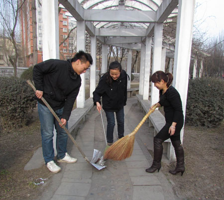 路義務(wù)打掃街道衛(wèi)生,清洗街道護(hù)欄,并對就近的公交站點(diǎn)進(jìn)行了擦洗。