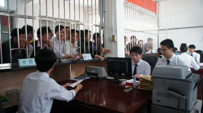 上圖為裝修一新的保德辦事處,工作人員正在認(rèn)真核對票款
